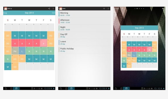 Tento tip na aplikáciu nepochybne poteší Androiďákov, ktorí majú pravidelnú zmenu pracovnej zmeny na týždennom, resp. mesačnom poriadku. Android aplikácia Shift.Cal však na prvý pohľad vytvára dojem klasického kalendára. Jej kúzlo spočíva ale v tom, že dokáže poskytnúť popri bežných funkciách aj krásny vizuálny prehľad jednotlivých zmien s farebným rozlíšením. Nechýbajú štatistiky, praktický widget na plochu, možnosť upozornenia na nadchádzajúci začiatok zmeny alebo populárne užívateľské prostredie inšpirovaného Holo dizajnom, takže si zgustnú všetci milovníci pôžitku z „čistého„ Android-u.