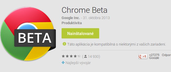 Prehliadač Chrome Beta je vyňatý z vyhľadávania na Google Play Store, preto je ho možné stiahnuť len prostredníctvom priameho odkazu, ktorý nájdete nižšie.