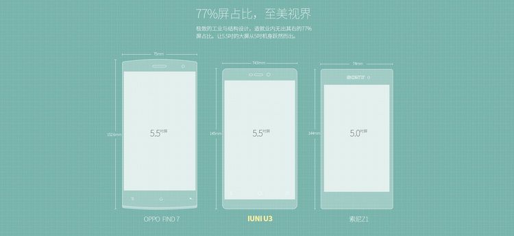 Začnime teda hlavným lákadlom smartfónu, s jeho 5,5-palcovým Quad HD LTPS displejom, ktorý ponúka pixelovú hustotu 538 pixelov na palec. To však nie je jediný úchvatný údaj o tomto smartfóne. Ponúka totiž 77% pomer displeja ku konštrukcii, čo je vynikajúci údaj, keďže svedčí o tom, aké kompaktné dané zariadenie v skutočnosti je. IUNI U3 okrem toho ponúka štvorjadrový Snapdragon 801 s grafickým čipom Adreno 330 a 3 GB operačnej pamäti RAM pre bezchybné fungovanie softvérovej výbavy.