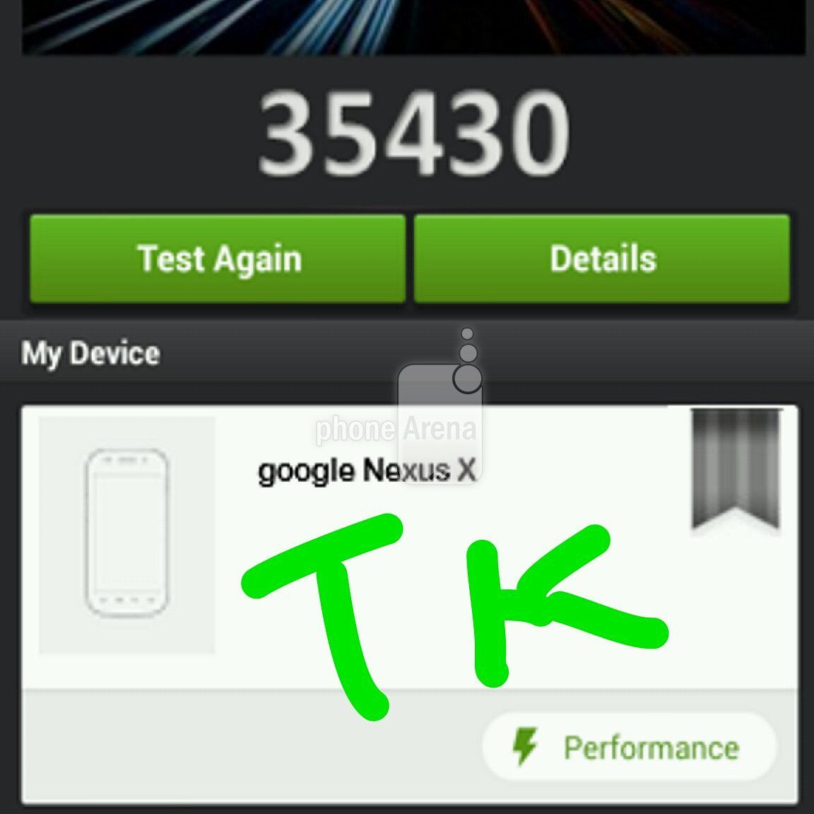 Informácie opäť pochádzajú z webu TKTechNews, ktorý zverejnil screenshoty z aplikácie AnTuTu, v ktorom bol Nexus X otestovaný. Ak by sme mali týmto informáciám veriť, Nexus X bude poháňať Snapdragon 805 s jadrami o takte 2.7 GHz, ktorému budú sekundovať až 3 GB operačnej pamäti RAM. Na zadnej strane by sa mal nachádzať 13 MPix fotoaparát s optickou stabilizáciou obrazu. Skóre – 35 430 – ktoré toto zariadenie dosiahlo je však prekvapivo malé. LG G3 s displejom s rovnakým rozlíšením a menej výkonným Snapdragon 801 získal 39 132 bodov.