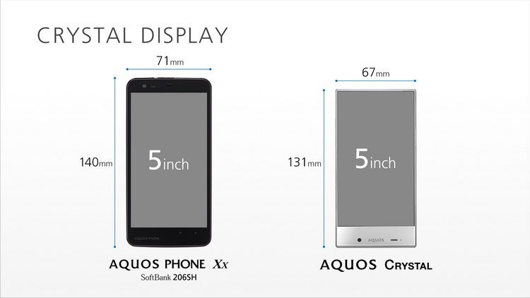 Sharp Aquos Crystan má len 131 milimetrov na výšku a 67 milimetrov na šírku. Sú to teda veľmi podobné rozmery, ako v prípade malého 4,5-palcového Moto G.