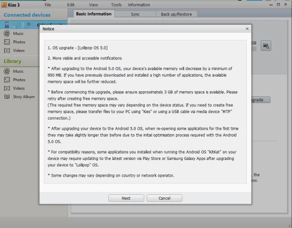 Aktualizácia na Android 5.0 zatiaľ neprebehla cez OTA (Over The Air). Na úspešné nahodenie novej verzie potrebujete zariadenie pripojiť k počítaču a spustiť program Kies 3.