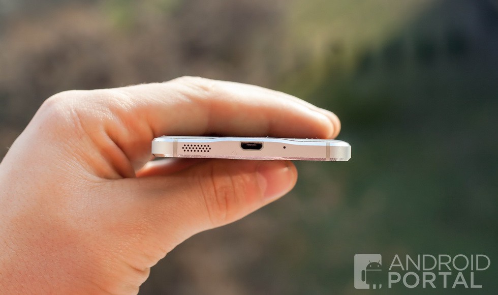 Späť k dizajnu. Predná strana je chránená krycím sklíčkom Gorilla Glass 4, ktoré je tenšie a tvrdšie, ako predchádzajúca generácia. Telefón je tiež veľmi ľahký. Pri 115 gramoch sa teda nemusíte obávať že ho rozbijete. V ochrane zariadenia pomáha aj hliníkový rámik, ktorým Samsung konečne nahradil otrasné plastové/chrómové rámiky z minulosti. Nakoniec, na zadnej strane nájdete mäkký plast s jamkami, ktorý nevyzerá vôbec zle a pomáha pri úchope. Smartfón sa vôbec nešmýka, ani v chladnom a suchom počasí. Ja osobne si myslím, že táto kombinácia skla, kovu a plastu je úplne ideálna a Samsung by sa jej mal držať. Hliník na zadnej strane je elegantný, no čo sa funkčnosti týka, nemusí byť najideálnejší. Zle izoluje teplotu, ľahko sa poškriabe a v mnohých prípadoch sa nedá vymeniť.