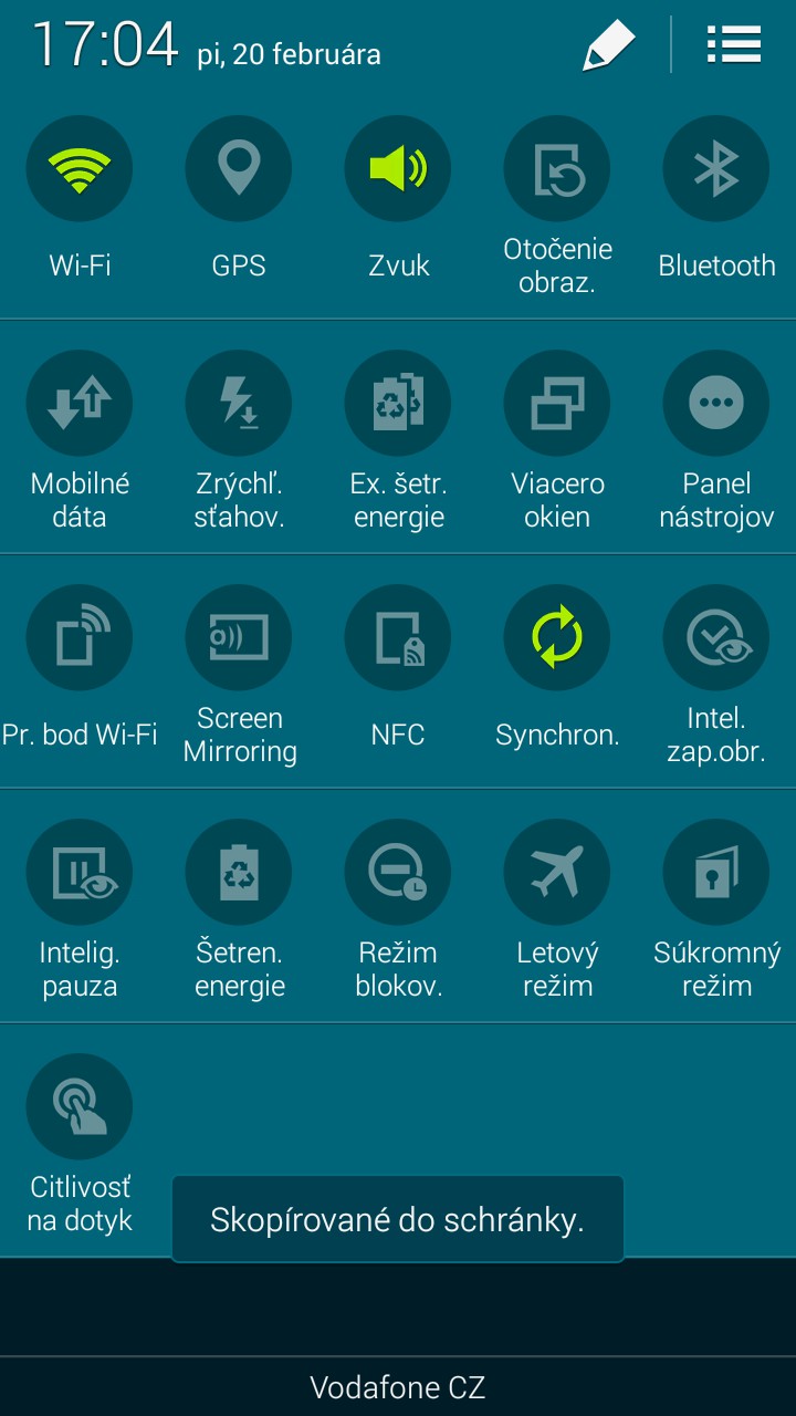 Konektivita: Wi-Fi 802.11 a/b/g/n/ac, dual-band, Wi-Fi Direct, hotspot, Bluetooth v4.0, GPS, GLONASS, NFC, microUSB v2.0