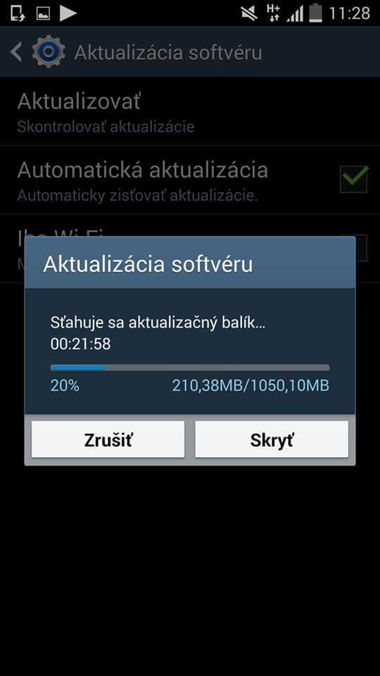 Upozornenie: Aktualizačný balíček má až 1 050 MB, sťahujte ho len na Wi-Fi pripojení
