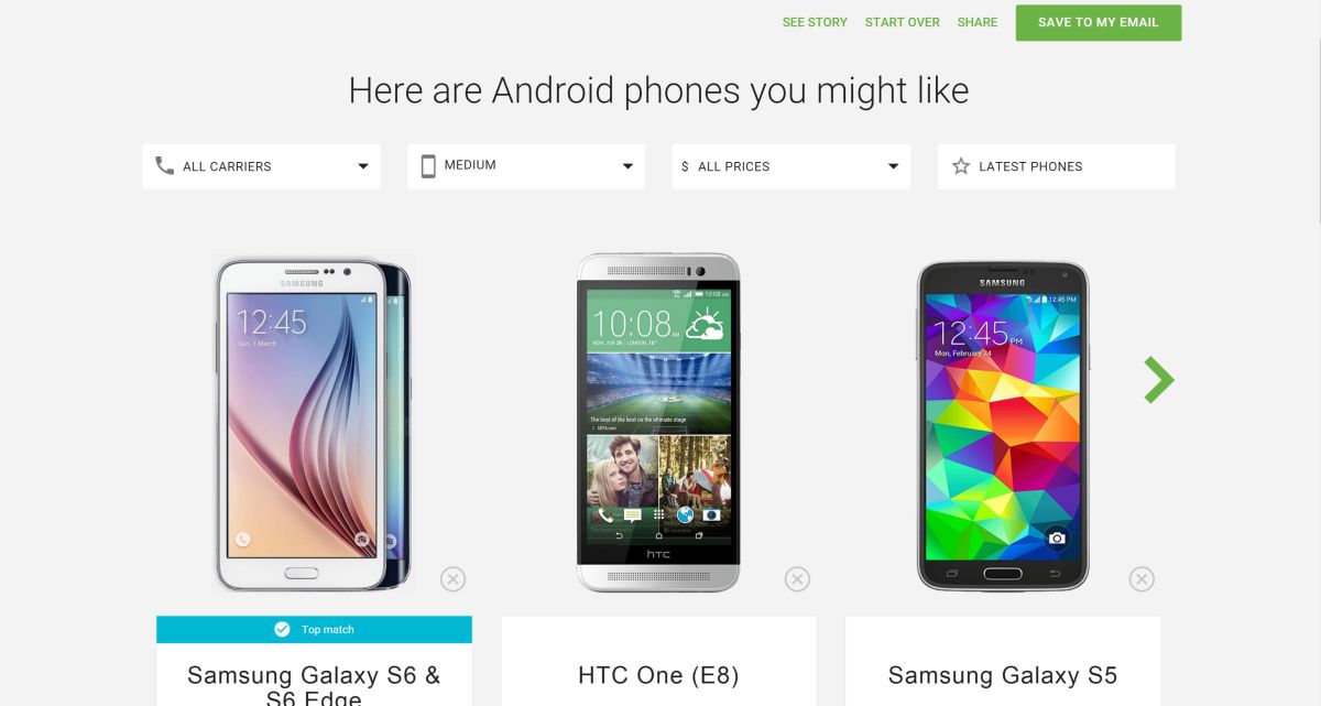 Mne Google odporučil Samsung Galaxy S6, Galaxy S5 a HTC One (E8). A čo vám?