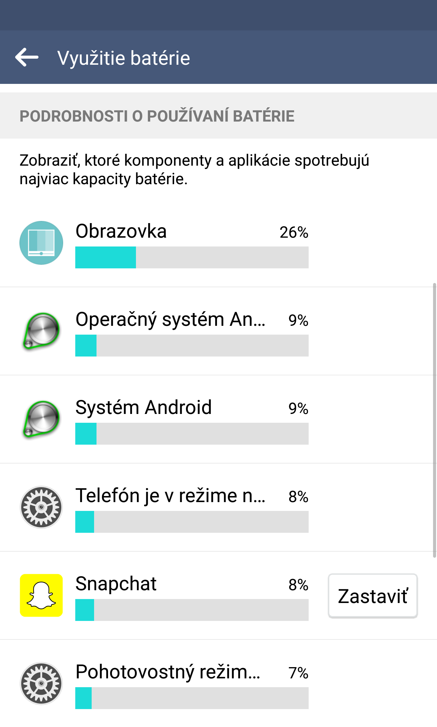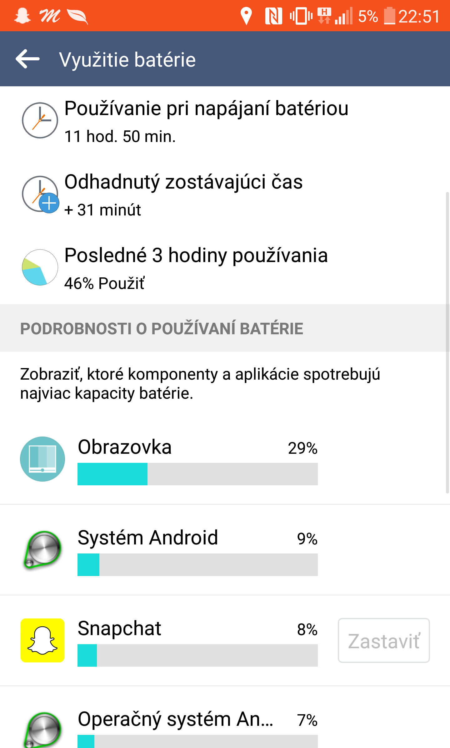 Hodinové pozeranie napríklad takého filmu mi strhlo z batérie asi okolo 11%, online počúvanie hudby za jednu hodinu 3%, surfovanie na internete cez Wi-Fi 2% za 10 minút a 20 minútové hranie náročnej hry Asphalt 8 bez zapnutej optimalizácie grafiky 12%.