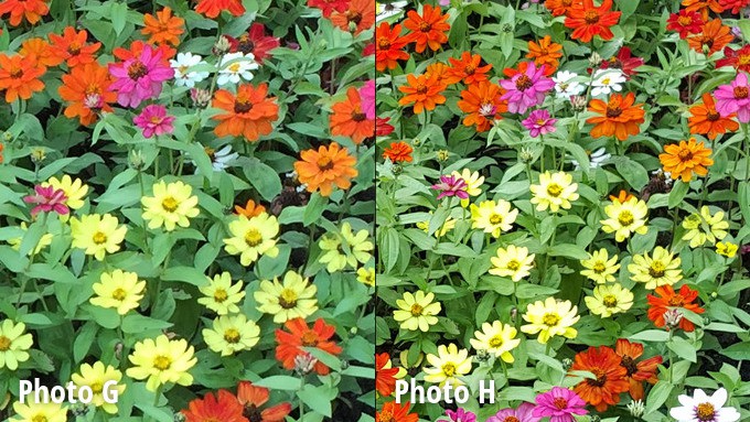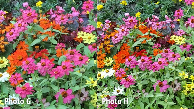 Vonku momentálne kvitne množstvo farebných kvetov a toto je jeden z nich. Oba snímky sú dosť odlišné. Jeden je s vysokým kontrastom, zatiaľ čo na druhom vidíme viac detailov v tmavých oblastiach.