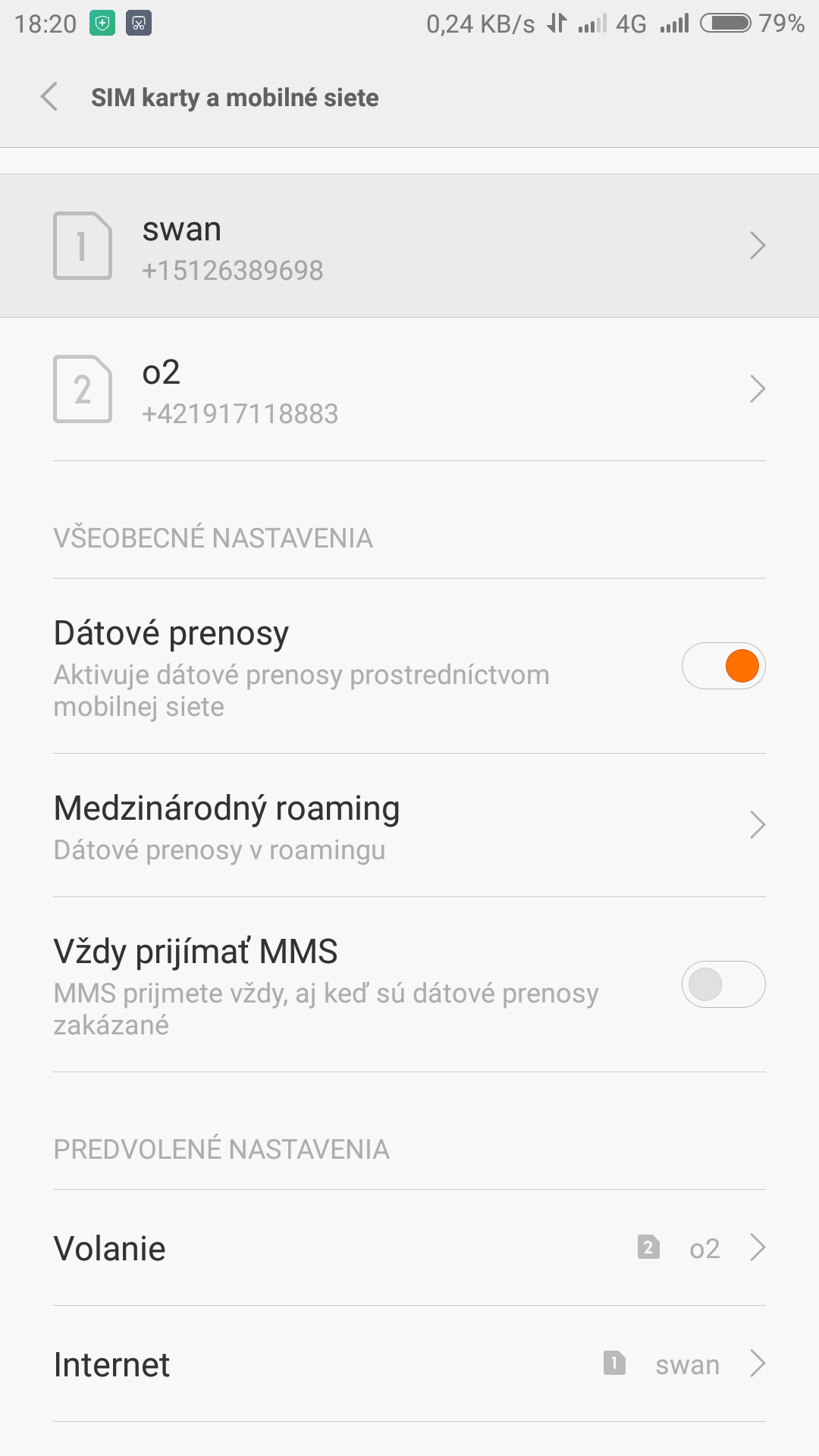 A ako sa vyššie už spomínalo, môžete používať až dve microSIM karty od rôznych mobilných operátorov v rovnakom čase. My sme do smartfónu vložili jednu od SWANu a druhú od O2, pričom v nastaveniach určíte, ktorá je na volanie a krátke textové správy, a ktorá zase poslúži na dátový prenos. Jeden aj druhý slot pritom podporuje 2G, 3G a 4G konektivitu.