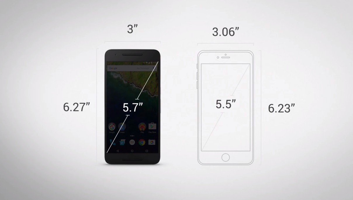Takmer celá predná strana je prekrytá 5,7-palcovým AMOLED displejom. Aj napriek svojej veľkosti celé zariadenie nie je väčšie ako iPhone 6s Plus, ktorý ponúka len 5,5-palcový displej. Čo sa rozlíšenia týka, Huawei Nexus 6P ponúka quad HD (2 560 x 1 440) panel.