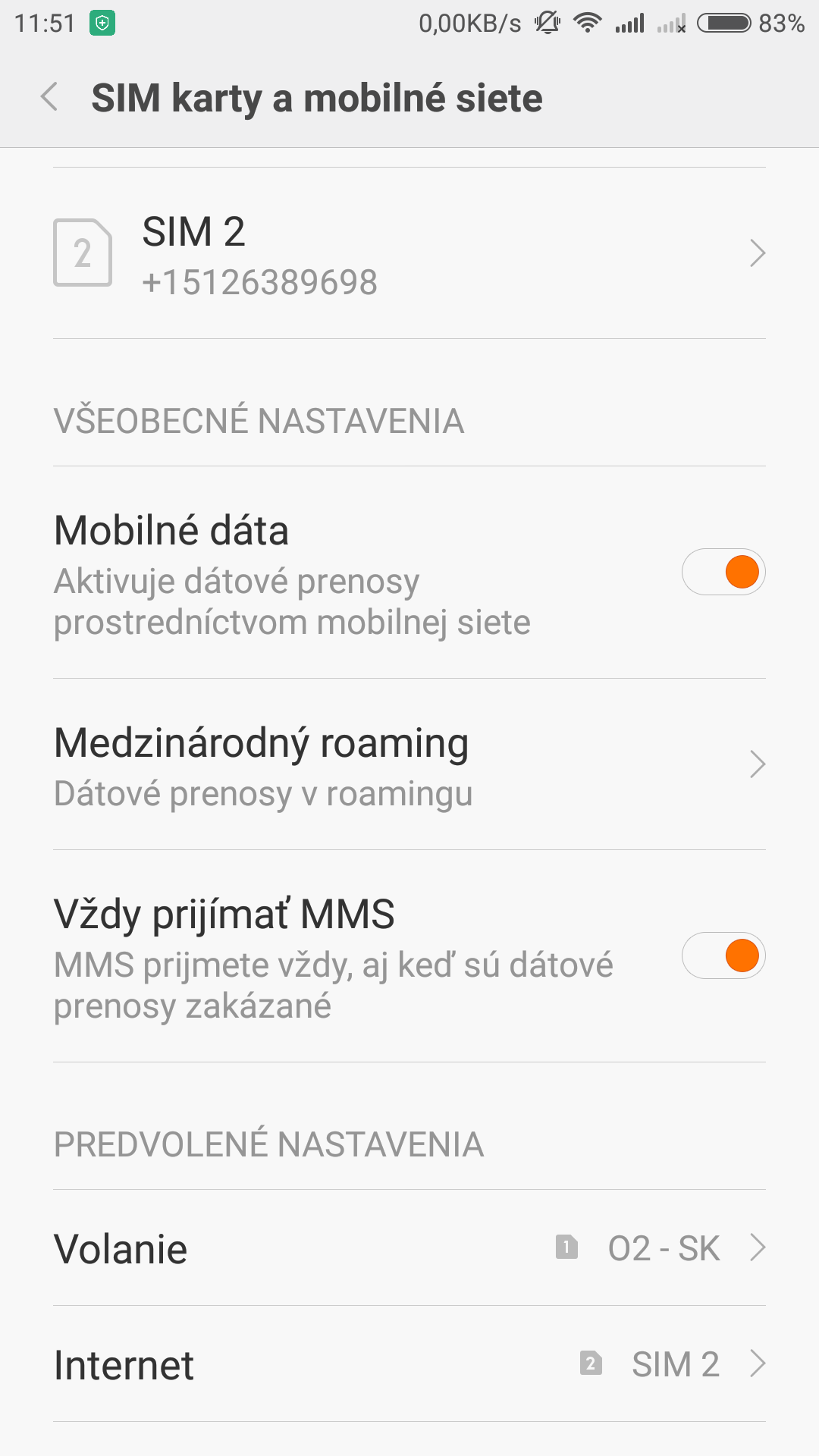 Keďže ide o čínsky smartfón, dual SIM funkcionalita je samozrejmosťou. Do slotu zasuniete dve karty vo veľkosti microSIM, pričom obe fungujú naraz. Nastavenia ponúkajú výber z toho, ktorá má zabezpečovať realizáciu telefonátov a prijímanie/odosielanie krátkych textových správ, a ktorá zase poslúži na dátový prenos. Náš testovací kus využíval služby O2 a SWANu.