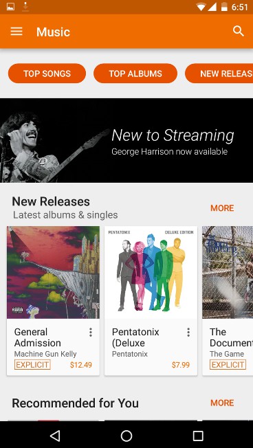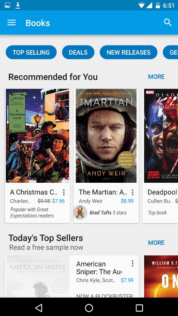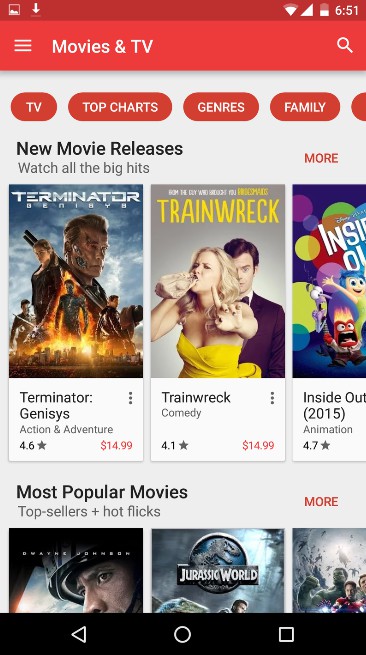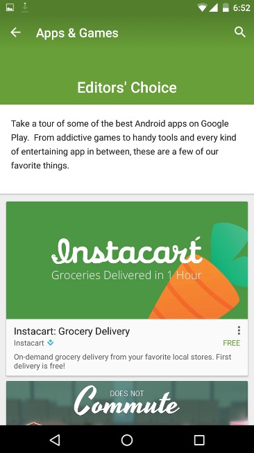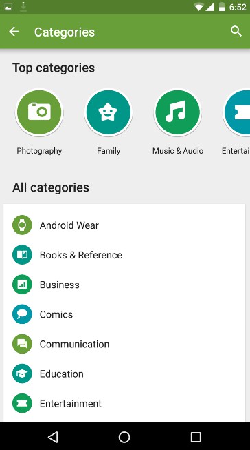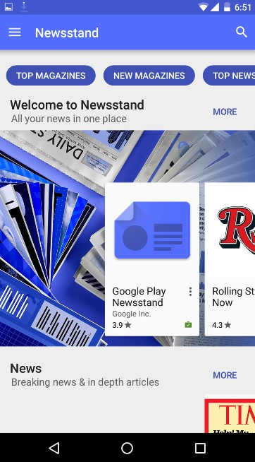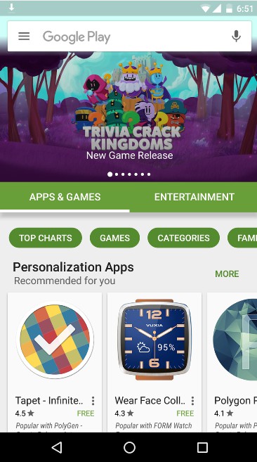 Dobre známy Google Play s novým dizajnom sa pomaly ale isto začal prebojovávať na prvé Android zariadenia. Novinkou sú dve veľké záložky, ktoré rozdeľujú aplikácie a hry od „zábavy“. Prvá záložka je ďalej rozdelená na TOP zoznamy, hry, kategórie, rodinu a výbery redakcie. V druhej záložke sa zas nachádzajú filmy, hudba, knihy a časopisy.