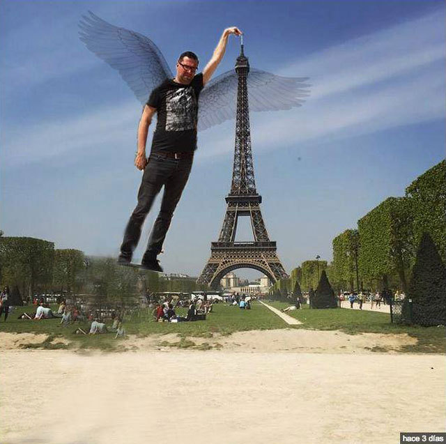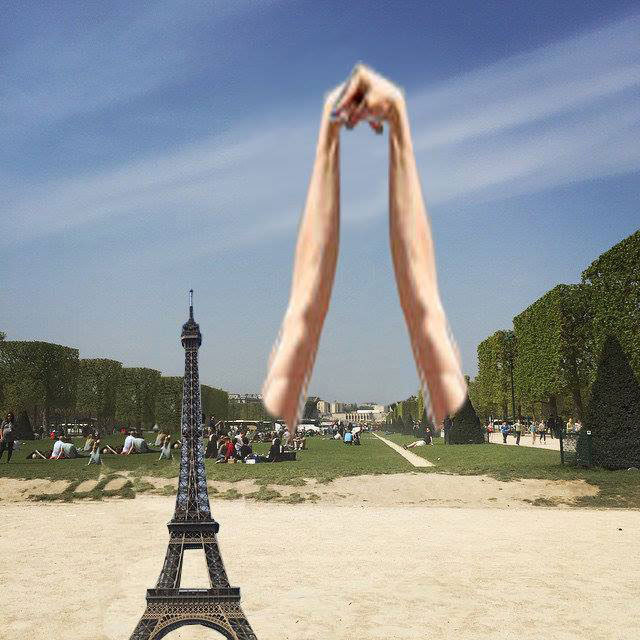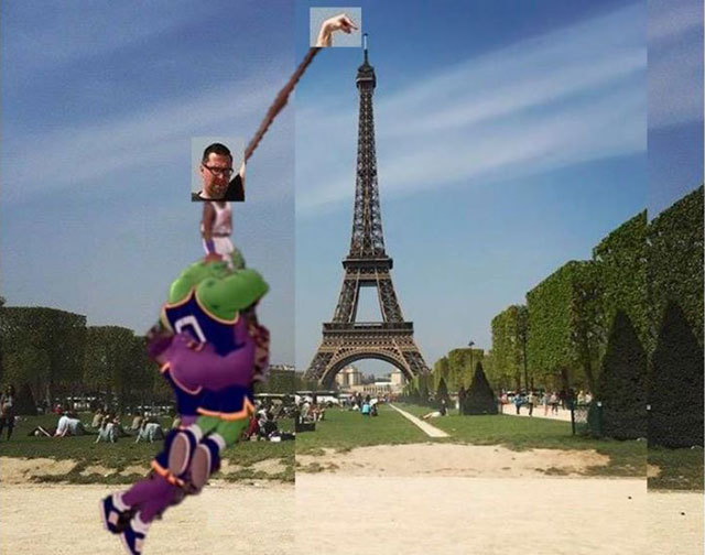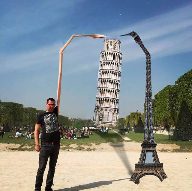 Sid Frisjes však aj napriek tomu zavesil nepodarenú fotografiu s parížskou dominantou na Instagram s prosbou, aby mu niekto, kto je zdatný vo Photoshope pomohol jeho pamiatku na Paríž vylepšiť. Tejto možnosti sa chytilo veľa „vtipálkov“ a desiatky vylepšených fotografií teraz kolujú internetom s cieľom pobaviť čo najviac ľudí. Presvedčte sa sami a pozrite sa, na čo všetko ľudia dokázali prísť.