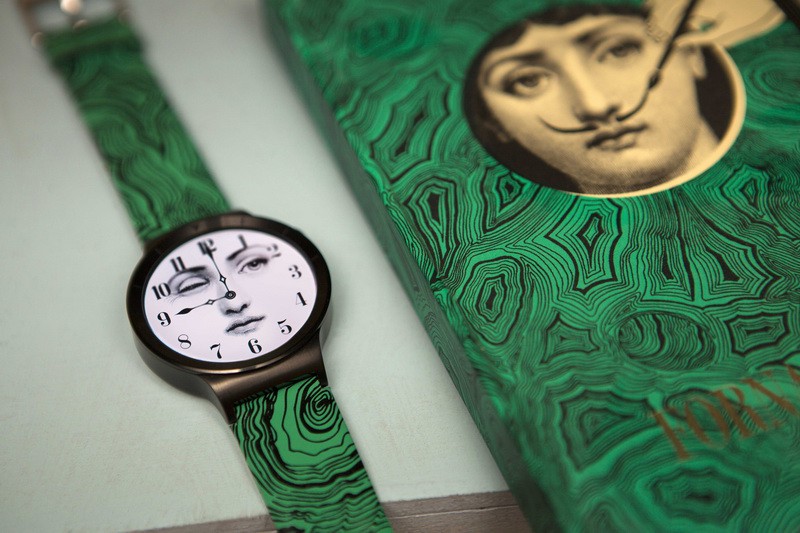 Fornasettim navrhnuté hodinky umožňujú používateľom zostať pripojení nech sú kdekoľvek, a to vďaka oznámeniam o prichádzajúcich hovoroch, textových správach alebo e-mailoch. Exkluzívny dizajn ciferníku obsahuje kultový Fornasettiho motív „Tema e Variazioni“, remienok hodiniek a škatuľka, v ktorej sú hodinky uložené, majú klasickú zelenú farbu „Malachite“, typickú pre Fornasettiho práce. Na škatuľke je rovnako zobrazený Fornasettiho motív kľúčovej dierky. Tieto prémiové hodinky v sebe spájajú nadčasový estetický dizajn s najnovšími technológiami.