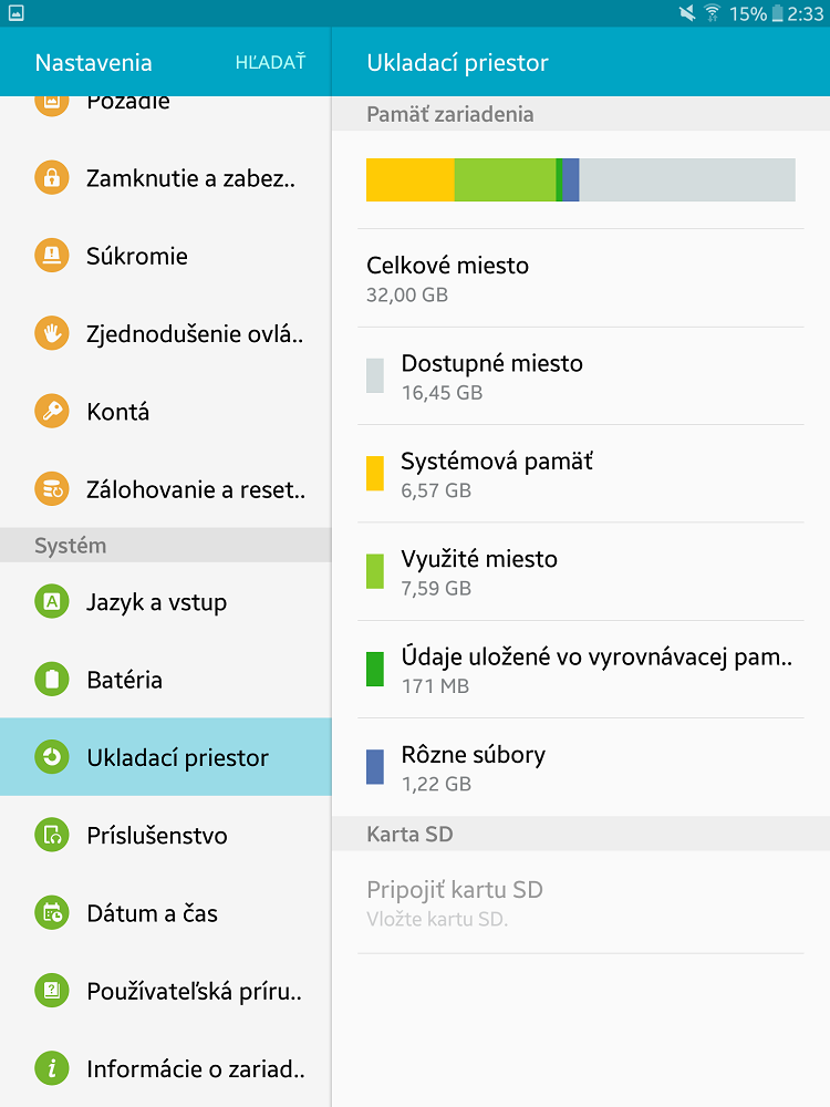 – 32 alebo 64 GB úložisko, slot pre microSD