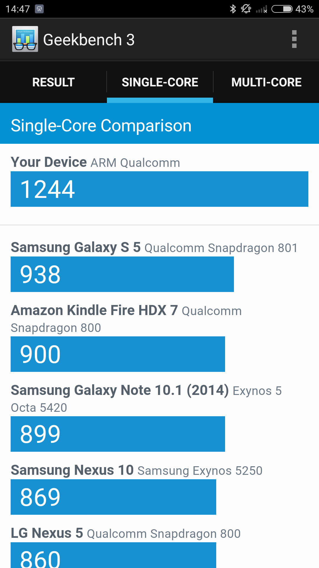 Jeho výkon sa dokonca vyšplhal na úroveň súčasnej vlajkovej lode HTC – One M9. Tá v sebe ukrýva mierne lepší Snapdragon 810.
