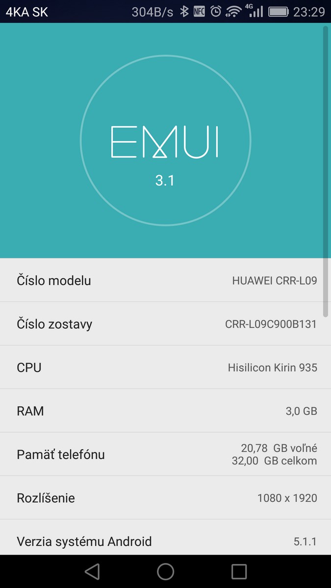Telefón prichádza nabitý zaujímavými komponentami, čo sa prejavilo aj do plynulého chodu, ktorý popíšem o niečo neskôr. Medzi najdôležitejšie údaje, o ktorých by ste mali vedieť je high-end čipset HiSilicon Kirin 935 so štyrmi jadrami Cortex-A53 o takte 2.2GHz a štyrmi energeticky úspornejšími jadrami o takte 1.5GHz. Telefón medzi dvojicou štvorjadrových procesorov prepína automaticky podľa toho, čo s ním robíte. Ak len povedzme nastavujete budík, využije energeticky úsporné jadrá. Ak však zapnete náročnú hru, naštartuje 2.2GHz monštrum, ktoré hru rozhryzne napol a ešte sa pritom bude usmievať. Vo výbavičke nechýba ani grafický čip Mali-T628 a 3GB operačnej pamäte RAM. Čerešnička na záver? Huawei si čipsety navrhuje a optimalizuje sám, čo je pri práci s telefónom jednoznačne citeľné.
