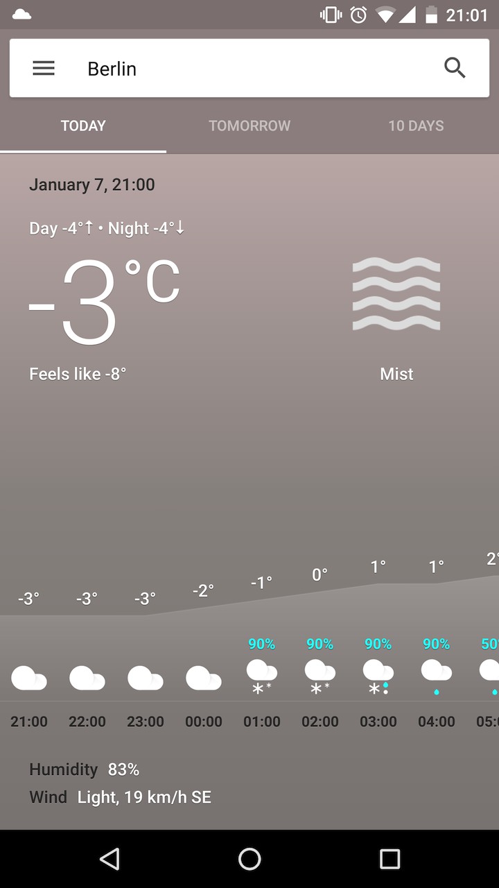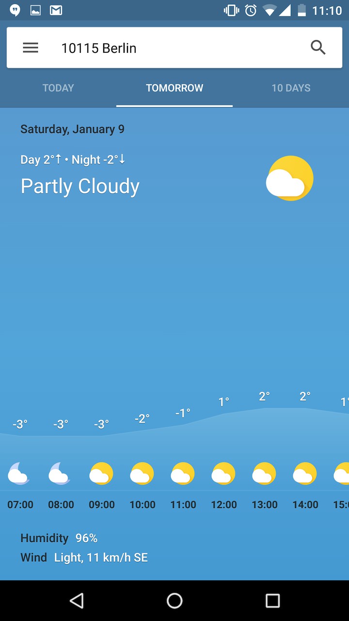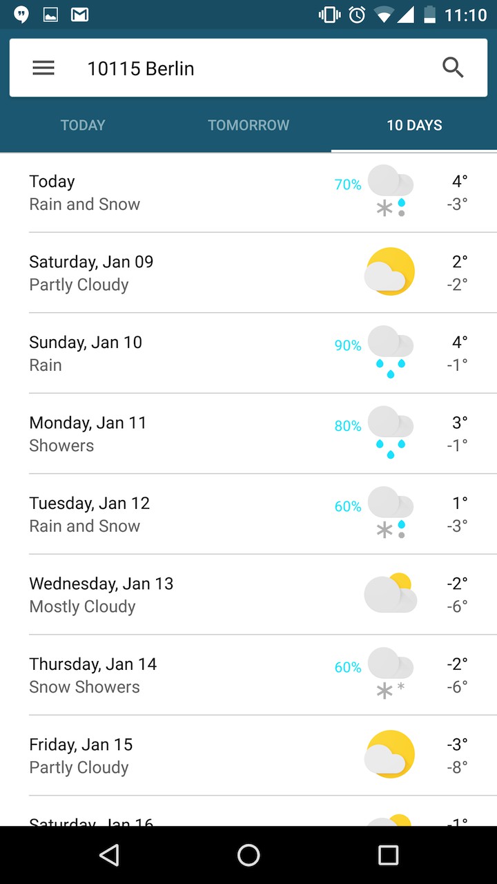 Nová kartička po rozkliknutí zaberie celý displej a stane sa z nej kvázi plná aplikácia. Na vrchu máte na výber z troch záložiek – Dnes, zajtra a 10 dní.
