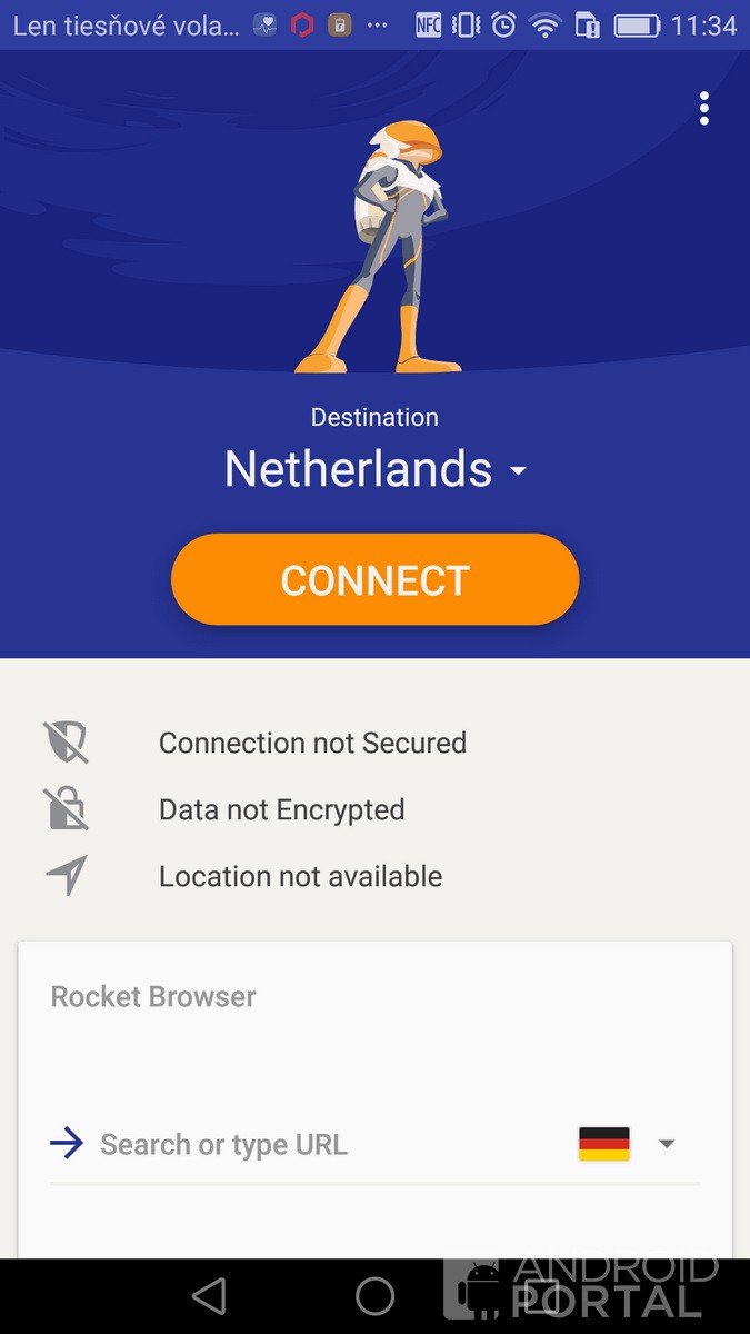 Po spustení aplikácie vás privíta rýchla informácia o tom, že VPN Rocket po novom slúži aj ako šifrovaný a bezpečný prehliadač, čo vám opäť môže pomôcť pri zabezpečení vašej internetovej identity. Potom si už len vyberiete, na ktorý server sa chcete pripojiť (v zozname ich je niekoľko aj s ukazateľom signálu, resp. sily pripojenia) a je to.
