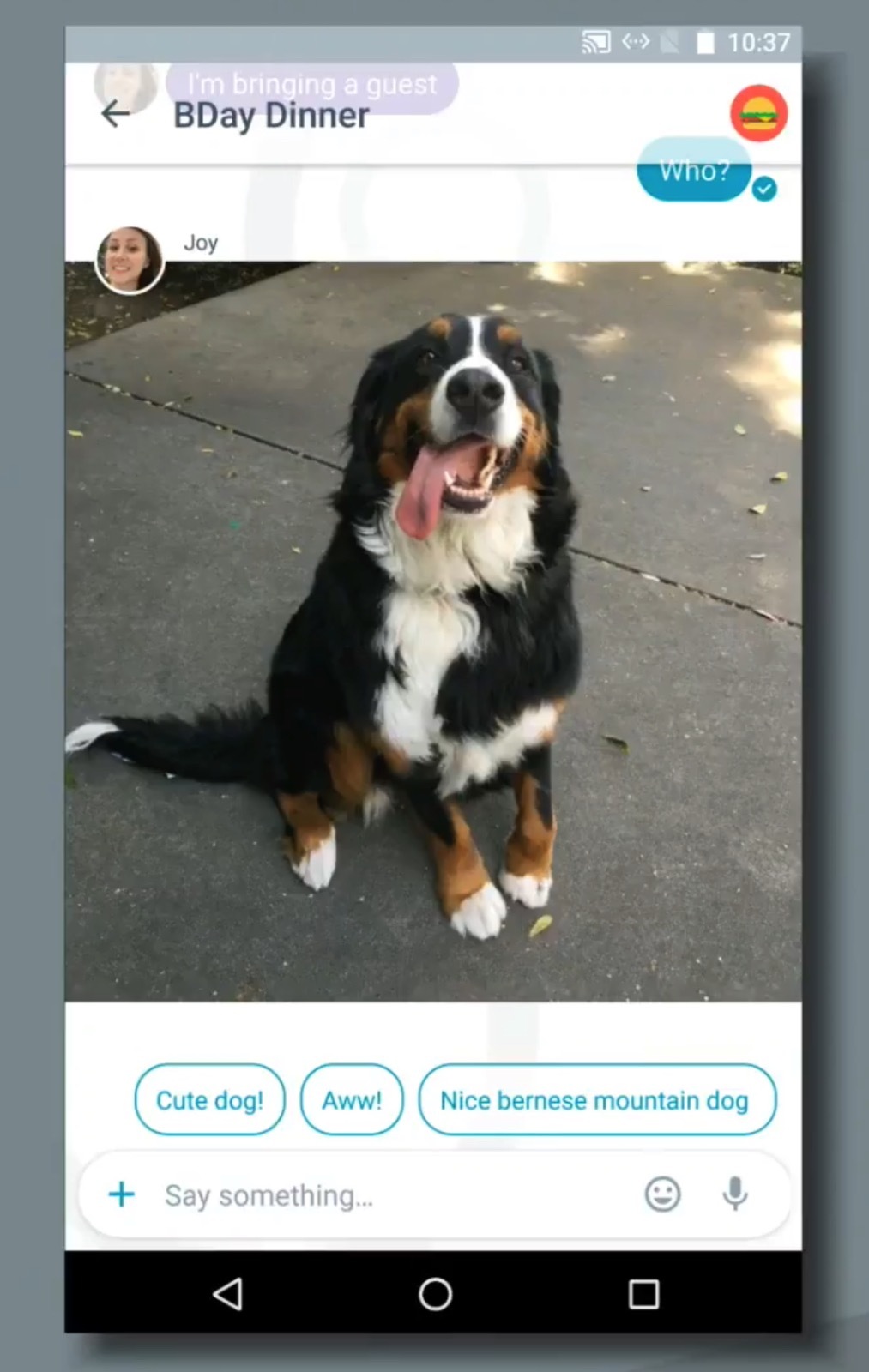 Rýchle odpovede navyše fungujú i pri fotografiách. Vďaka technológii na rozpoznanie obsahu obrázku preto dokáže navrhovať vhodné odpovede aj v takomto prípade. Pokiaľ vám teda niekto pošle fotku svojho psa, Allo navrhne napríklad niekoľko rôznych typov pochvál.