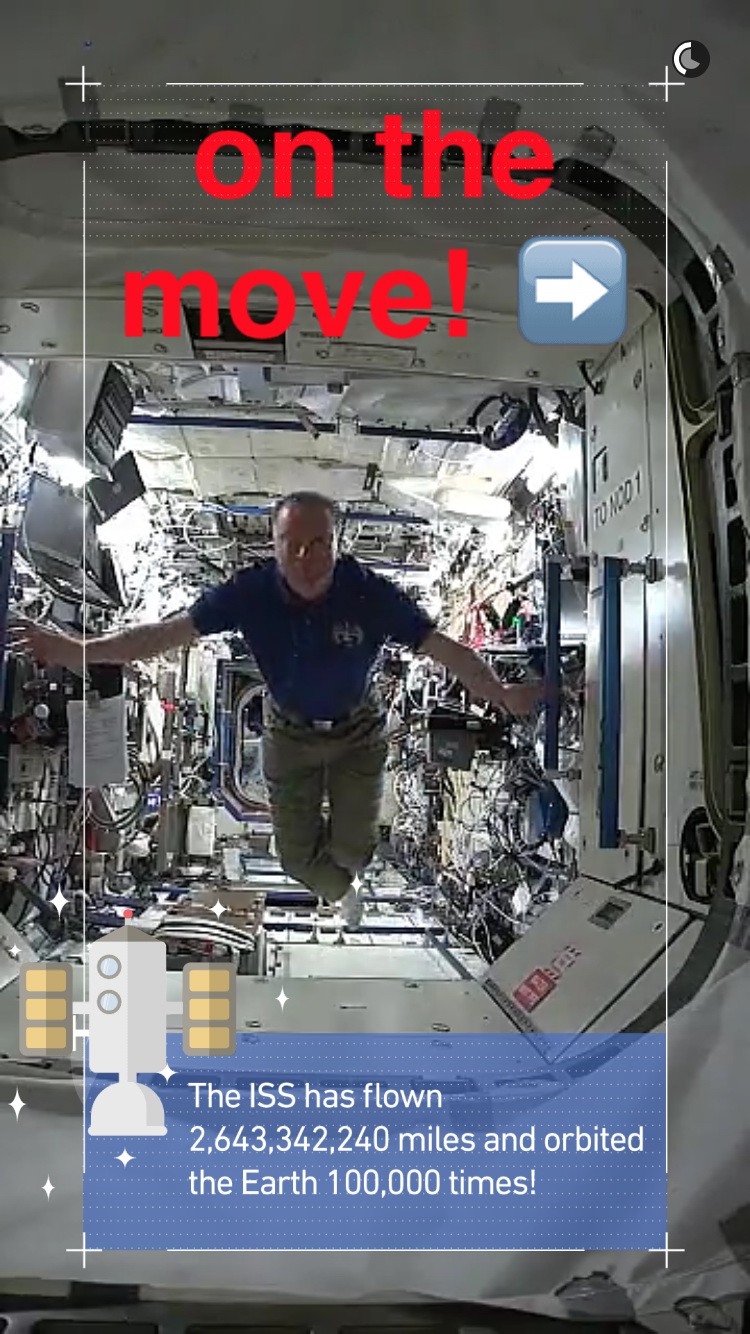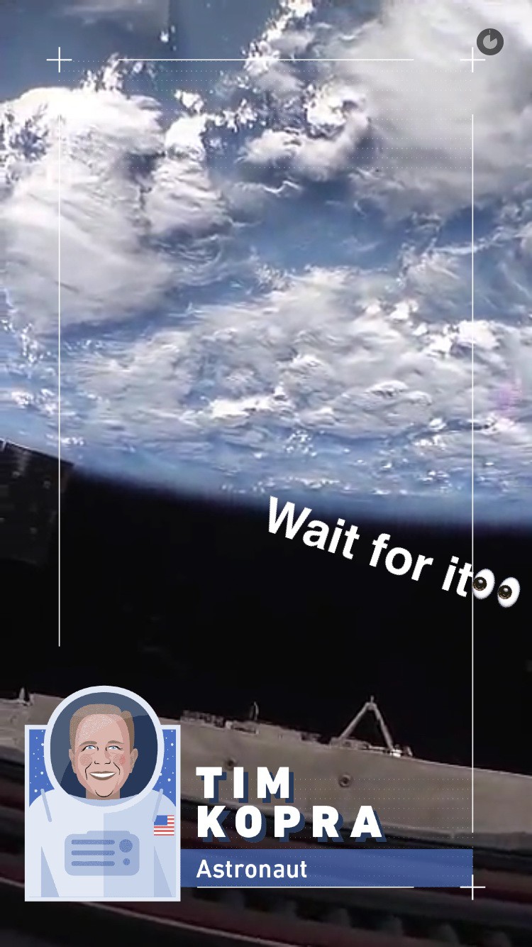 Pri tejto výnomočnej príležitosti sa agentúra NASA spojila so službou Snapchat, aby vytvorili príbeh o živote vo vesmíre s názvom Day in Space (deň vo vesmíre). Vďaka tejto aplikácii tak môžete nazrieť do bežného dňa astronautov z expedície 47 pod vedením Tima Kopra, vzdialených 410 kilometrov od Zeme.