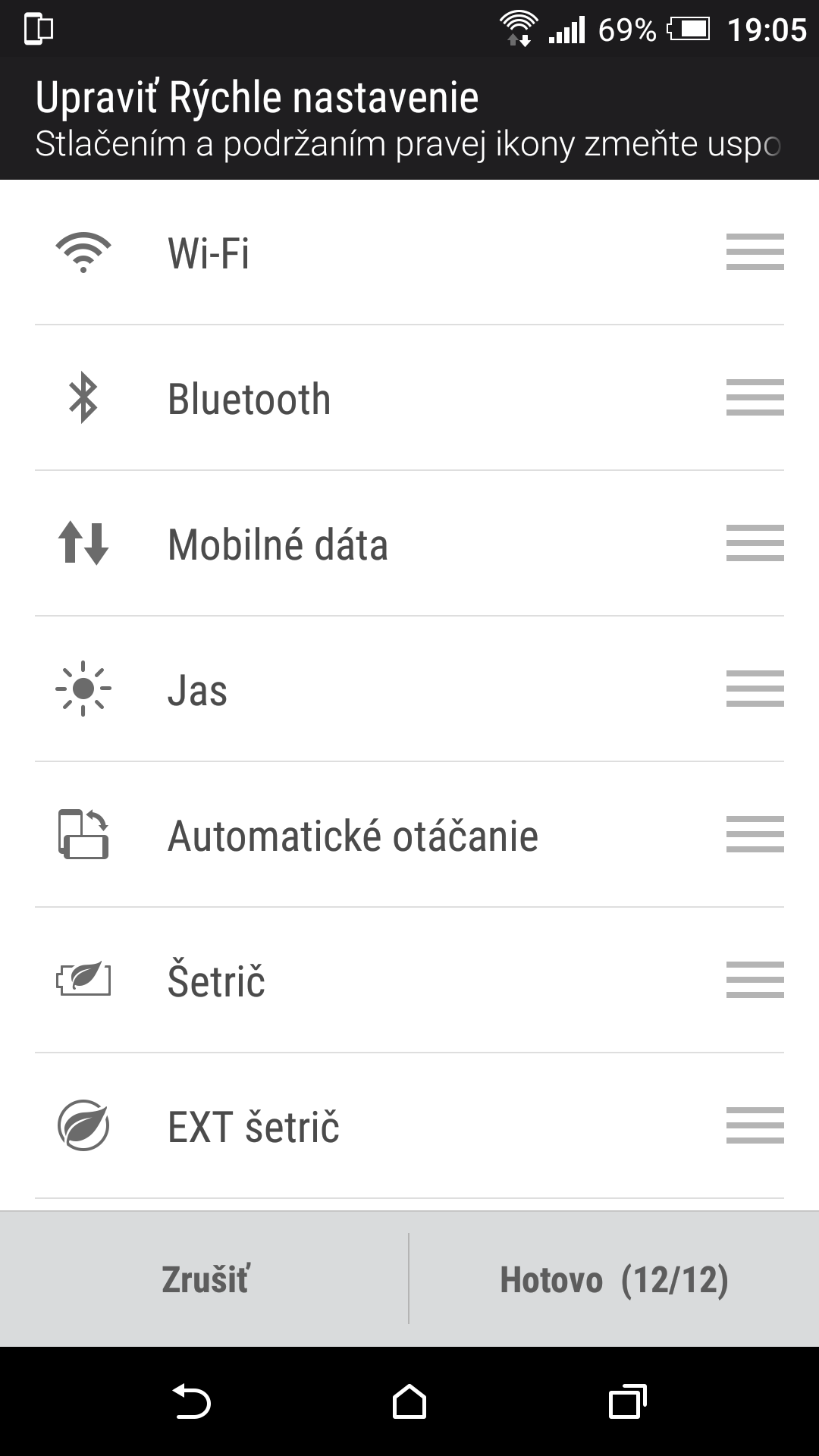 Jednotlivé prvky UI sú v HTC One M9 rozložené tak, akoby si to mnohí z nás aj predstavovali. Do nastavení sa dá pristupovať priamo cez notifikačnú lištu (má aj maličké notifikačné LED svetlo v dierke slúchadiel), ktorá skrýva aj rýchle nastavenia vrátane možnosti meniť zobrazované tlačidlá. Po swipnutí zľava doprava na domácej obrazovke sa dokonca zobrazí takzvaný centrálny HUB s nielen spravodajskými novinkami, ale i aktuálnymi informáciami zo sociálnych sietí. Všetko dôležité je teda hneď poruke.