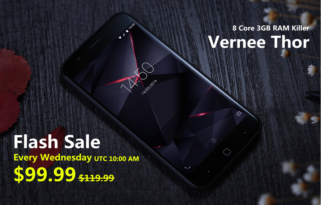 Túto stredu (6. júla 2016), približne po 13-tej hodine nášho času klesne cena smartfónu Vernee Thor na hodnotu 99,99 dolárov. Vybrať si budete môcť aj balenie s cenou 109,99 dolárov. V ňom nájdete navyše puzdro a tvrdené ochranné sklo na displej zariadenia.
