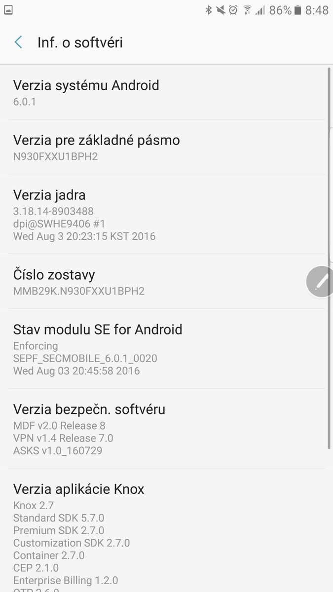 Samsung Galaxy Note 7: Softvér