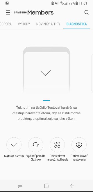Diagnostika – umožňuje testovať problémy s hardvérom telefónu a optimalizovať jeho výkon