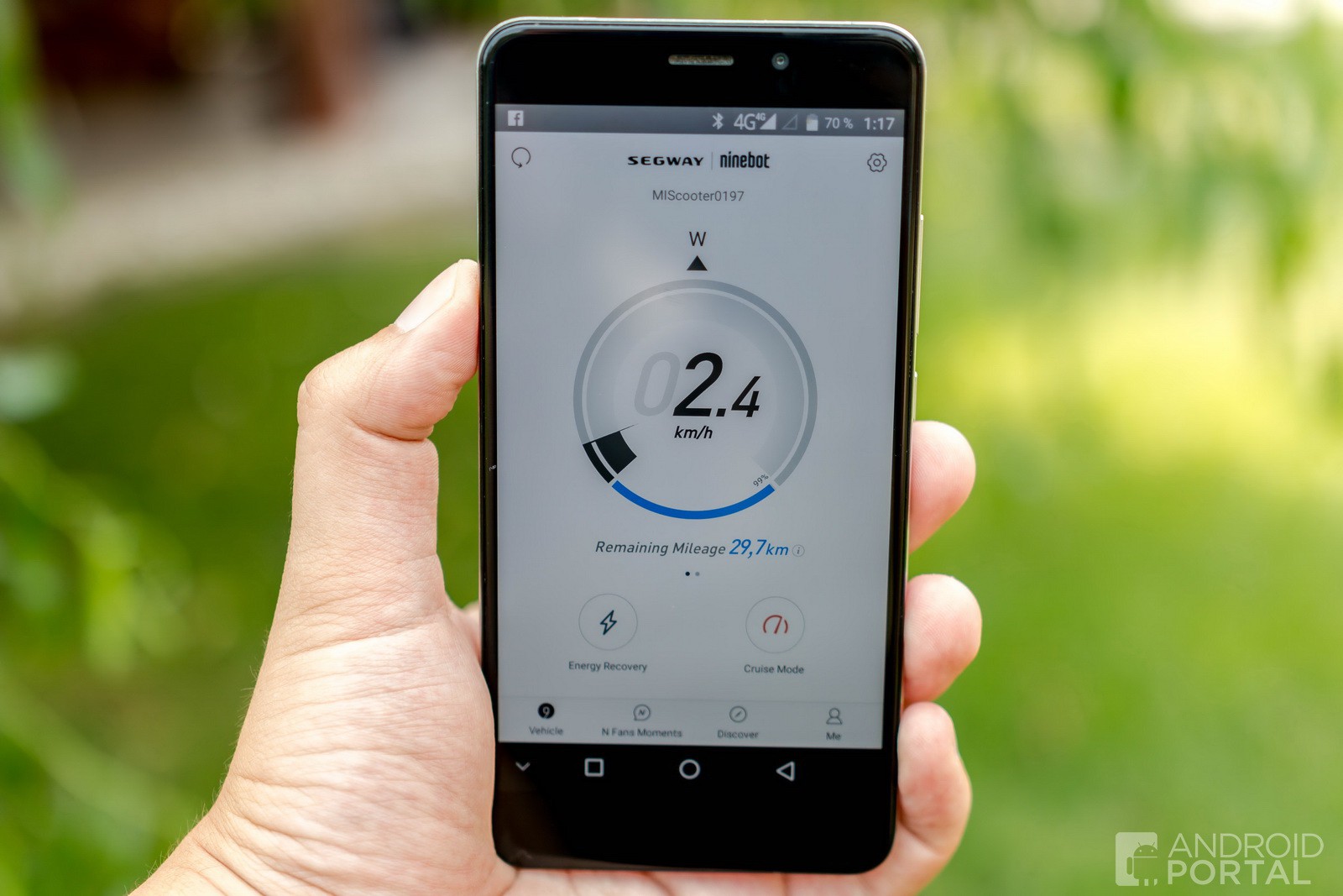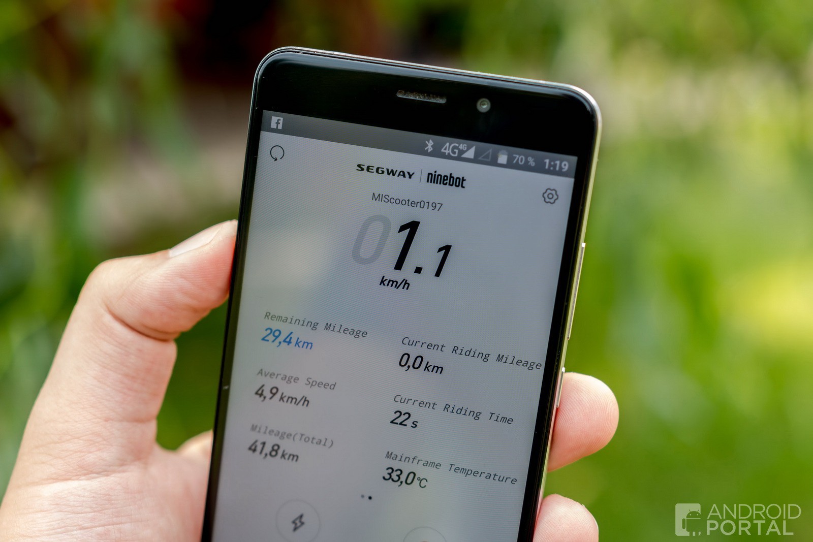 Vzhľadom na to, že kolobežku vyrobil jeden z najväčších technologických gigantov v Číne si ju pochopiteľne viete prepojiť s telefónom. V mobilnej aplikácii od Ninebot (originál od Xiaomi nám nefungovala) potom objavíte komplexnú telemetriu, ako napríklad aktuálnu rýchlosť, dojazd, stav batérie, prejdenú vzdialenosť a oveľa viac. Nechýba ani tempomat. Na kolobežke.