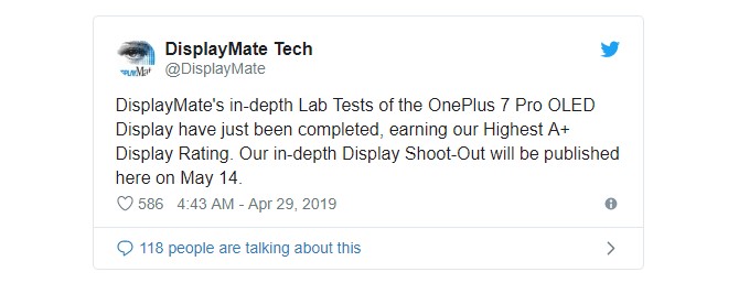 DisplayMate svoje hodnotenia obrazoviek väčšinou zverejňuje až po predstavení konkrétneho zariadenia. Inak tomu nebude ani pri OnePlus 7 Pro. Netradične ale autori zverejnili krátky súhrn v predstihu na sociálnej sieti Twitter.